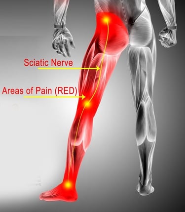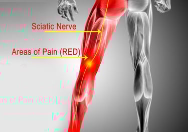 Sciatica, often called sciatic neuralgia, is a condition that causes intense pain in the lower back, radiating down the leg and sometimes reaching the foot. This pain can make sitting or standing for long periods unbearable and often leads to weakness, tingling, and numbness in the affected leg and foot. Sciatica typically fluctuates in severity over time, with episodes of varying pain intensity. If left untreated, however, it can worsen and potentially cause permanent nerve damage.